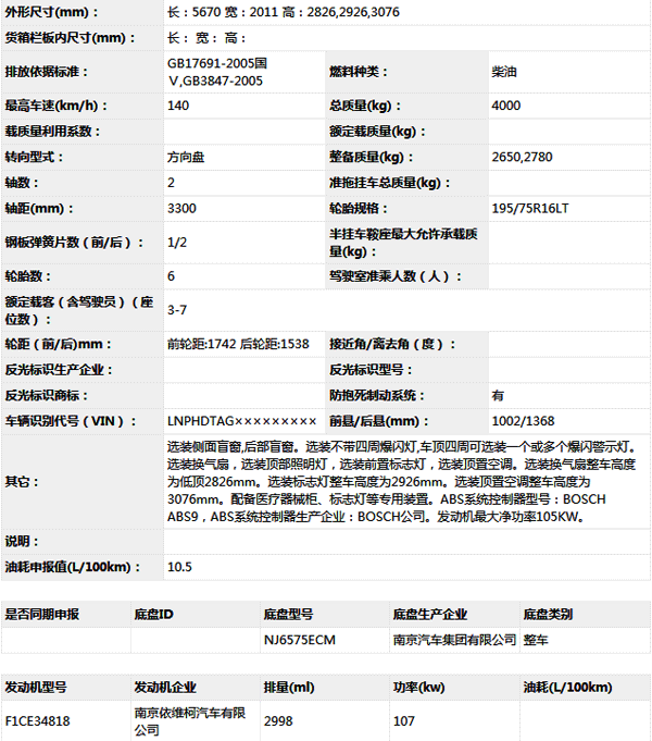 公告型號 NJ5045XJHF2E