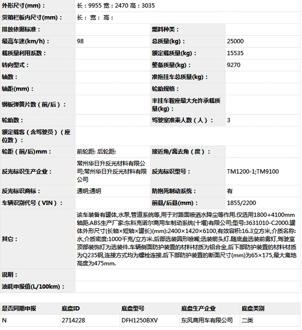 公告型號(hào) CHD5254GQXDFE5