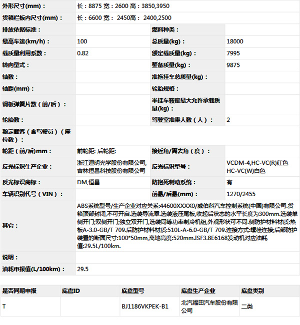 公告型號(hào) BJ5186XLC-B1