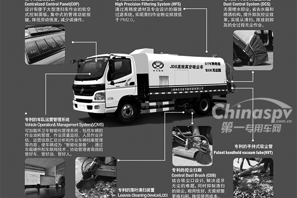 利用負(fù)壓純吸原理實現(xiàn)單向進風(fēng),配裝專利無塵邊掃,實現(xiàn)路面縫隙和邊道路牙的快速高效清掃,節(jié)約水資源,避免清掃二次污染。