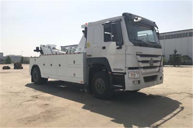 備注 1.托舉質(zhì)量為6660kg;2.后伸:600mm;3.整車側面為廂體式車廂圍板結構,后部為清障車專用裝置,故未安裝后部防護.該車為5600軸距.ABS系統(tǒng)型號為4460046300,生產(chǎn)企業(yè)為威伯科汽車控制系統(tǒng)(中國)有限公司