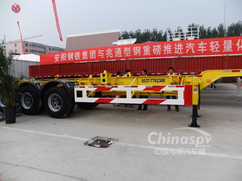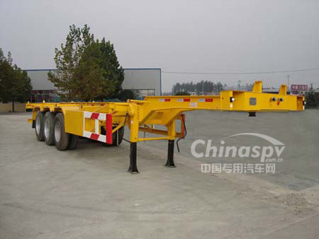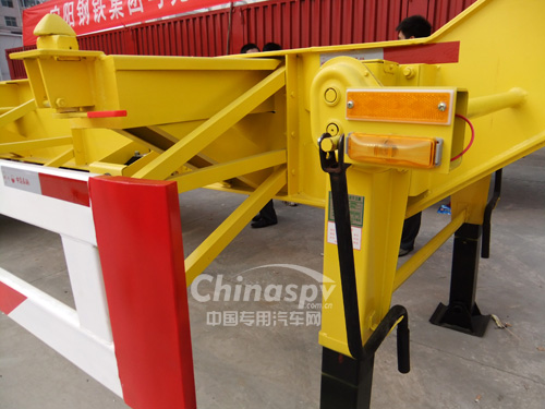 其它:該車僅能裝運40尺集裝箱,為小鵝頸式結(jié)構(gòu),牽引銷處的車架總高度為210mm。