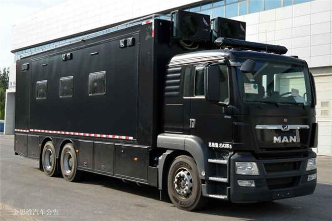 | 備注 | 頂部封閉,不可開啟;側防護為裙邊結構,側防護離地高390mm,后防護離地高度為470mm. 側防護及后防護:材質Q235,連接方式:螺栓連結,后部長*寬*高為2394mm×60mm×120mm;ABS型號:0 486 106,生產(chǎn)廠:KNORR;發(fā)動機最大凈功率為353kw.專用裝置:宿營床,空調,發(fā)電機電視,物品柜等,用于野外宿營。 | ||