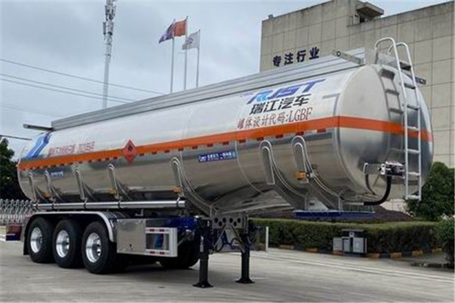 備注 罐體有效容積為43立方米.罐體外形尺寸(長×寬×高)(mm):11440×2540×1990(前)/2140(后),運輸車輛類型為FL,類項號:3.選裝頂部結(jié)構,擋泥板,燈支架,多種膠管箱,選裝前后爬梯結(jié)構,選裝接線盒位置,選裝工具箱位置,選裝滅火器位置,選裝后防護結(jié)構.ABS生產(chǎn)廠為威伯科汽車控制系統(tǒng)(中國)有限公司,型號為4005000810;克諾爾商用車系統(tǒng)企業(yè)管理(上海)有限公司,型號為K068353XXX,EBS生產(chǎn)廠為克諾爾商用車系統(tǒng)企業(yè)管理(上海)有限公司,型號為K11061XVXX,ABS生產(chǎn)廠為廣州瑞立科密汽車電子股份有限公司,型號為CM2XL-4S/2M.側(cè)防護材質(zhì)為鋁合金,后防護材質(zhì)為碳鋼,連接方式均為螺栓連接式,后防護離地高度為480mm,后部防護裝置的斷面尺寸(mm):150×60.牽引車采用適用于牽引危險品運輸半掛車的牽引車.