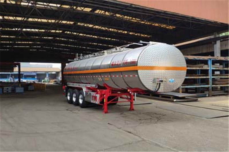 備注 罐體有效容積30.6立方米,罐體總?cè)萘?2.2立方米.罐體外形尺寸(mm):外罐長10550長軸2527短軸1957,內(nèi)罐長10350長軸2327短軸1757.危險貨物運輸車輛的類型為:FL型,準(zhǔn)運介質(zhì)的最大密度為1040千克/立方米,選裝集液槽數(shù)量及位置、罐頂走道、護欄樣式,選裝側(cè)防護工具箱位置、擋泥板樣式.選裝前部帶爬梯及后部爬梯位置,選裝尾部標(biāo)志板安裝位置,選裝軟管存放箱、側(cè)面結(jié)構(gòu)及穿線管,選裝握手盒結(jié)構(gòu),選裝分段裝配式大梁和T型梁結(jié)構(gòu)、支腿支架樣式、側(cè)防護支架樣式,選裝后部上橫梁結(jié)構(gòu)、材料及牌照板位置,選裝蒙皮、深淺封頭及燈支架,選裝正前、正后爬梯及頂部燈支架新結(jié)構(gòu), 選裝側(cè)面尾部操作箱、側(cè)面工具箱樣式、滅火器安裝位置及樣式.該車裝空氣懸架.ABS廠家:型號:威伯科(上海)管理有限公司,4005000880或廣州瑞立科密汽車電子股份有限公司,CM2XL-4S/2K(4S/2M)或浙江萬安科技股份有限公司,VIE-TABSⅡ或廣州市西合汽車電子裝備有限公司,XH-GQ4S2M-E01.EBS廠家:型號:克諾爾商用車系統(tǒng)企業(yè)管理(上海)有限公司,K11061XVXX或威伯科(上海)管理有限公司, 4801020640.側(cè)防護材料為鋁合金,螺栓連接,后防護材料為鋁合金或Q235,螺栓連接,后防護斷面尺寸80×150mm,后防護材料為Q235,螺栓連接,后防護斷面尺寸65×150mm,離地高500mm.采用適用于牽引危險品運輸半掛車的牽引車.整車長/軸距/半掛車牽引銷到車輛最前端距離/后懸(mm):11050/5400+1310+1310/1500/1530,11050/5200+1310+1310/1500/1730,11150/5200+1310+1310/1500/1830.