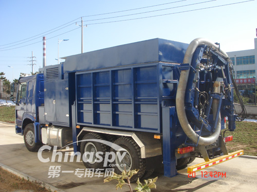 YH5250TLQ型工程垃圾清理車是在重汽ZZ1257N4748W二類底盤的基礎(chǔ)上改裝而成,主要由底盤、料箱總成、真空負(fù)壓輸送系統(tǒng)、空氣過濾系統(tǒng)、液壓系統(tǒng)、控制系統(tǒng)及隨車吊組成。該車是一種對(duì)市政工程、建筑工程、鐵路工程等工程垃圾的現(xiàn)場(chǎng)清理,以及工程中大顆粒狀物料輸送的專用設(shè)備,特別適合城市管網(wǎng)開挖施工、下水管道清理及高層建筑工程垃圾清理等工作。