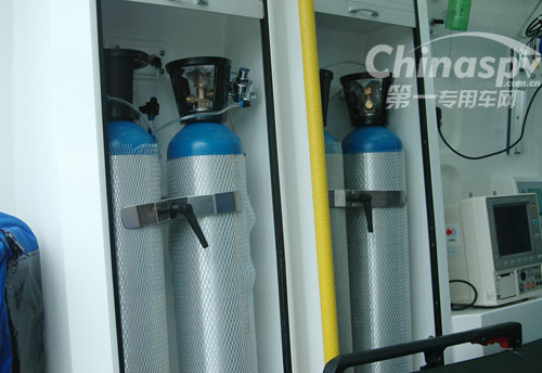 供氧系統(tǒng):10升氧氣瓶4只,大容量適合遠(yuǎn)途轉(zhuǎn)運(yùn)病人需要,隱藏式管道