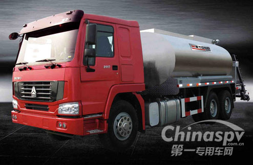 該系列車具有外形美觀大方,瀝青罐采用不銹鋼外包層,灑布霧化均勻、管道暢通、清洗方便、具有保溫加溫功能、操作方便、設計富有人性化等特點。重要部件采用原裝進口,技術先進可靠,在實際噴灑作業(yè)中,當噴灑量小于0.8kg/㎡時,更能突出優(yōu)越性“均勻”這一特點,這項技術突破了國內市場上同類車當瀝青灑布量越小,瀝青噴灑均勻度越難控制這一技術瓶頸,并在灑布方式、管道清潔、加熱等方面有獨到的解決方案。