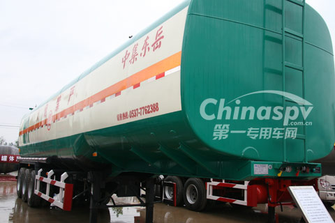 罐體總?cè)莘e58立方米,雙倉,采用高強(qiáng)度鋼設(shè)計(jì),成型美觀,自重輕。整車采用骨架式結(jié)構(gòu)設(shè)計(jì),罐體受力均勻,車架前后均開有卸荷槽,有效的保護(hù)了罐體前后封頭,提高罐體強(qiáng)度,該創(chuàng)新已成功申請國家專利。管路設(shè)計(jì)本著人性化的設(shè)計(jì)原則、操作簡單、快捷。