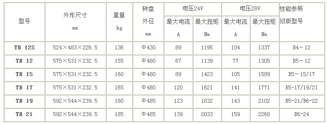 TB系列電渦流緩速器性能參數(shù)表